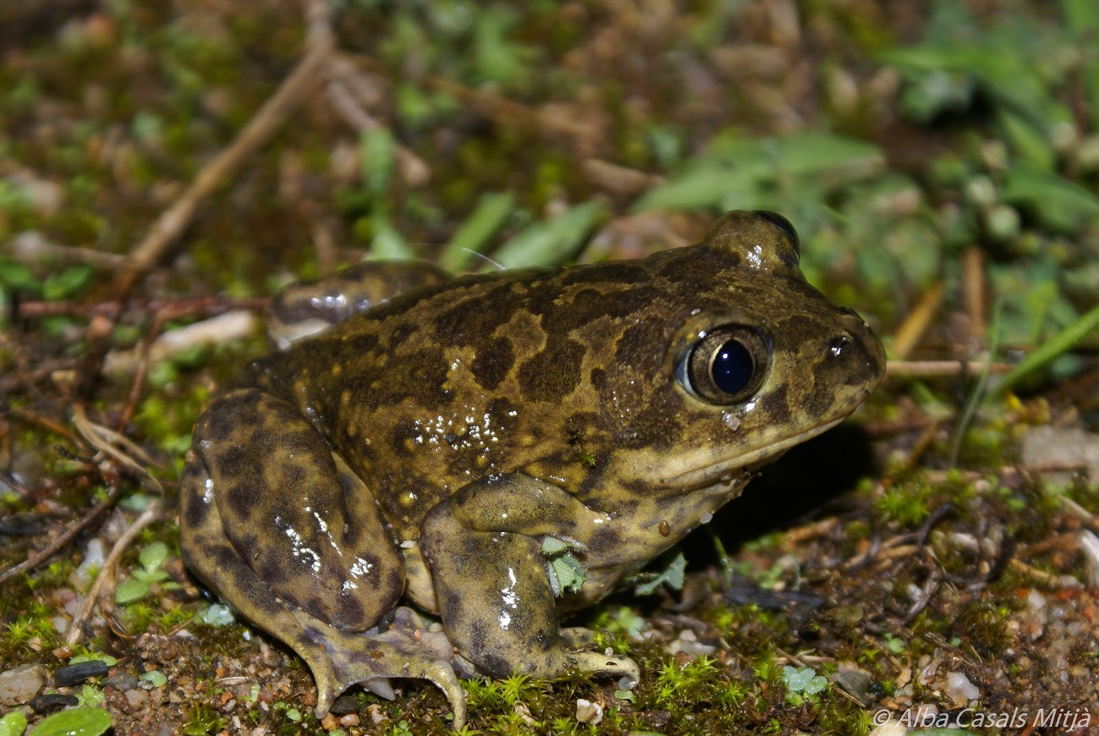 Els gripaus d’esperons adults tampoc van fer mala cara a les pluges i vam poder observar dos adults el passat mes de març. El primer es va veure durant la realització de l’escolta de cants del punt reproductiu on van fer la posta, i el segon durant la realització del transsecte 1, en una zona molt propera a aquest mateix punt reproductiu. El gripau d’esperons te uns requeriments d’hàbitat força específics, sobre tot si el comparem amb altres especies més generalistes com el gripau comú, ja que necessita de terrenys molt tous i sorrencs per enterrar-se. Es per això que moltes vegades es poden trobar lligats a un únic punt reproductiu, a falta d’aquestes condicions en el terreny. I aquest podria ser-ne el cas a les deveses de Salt, on s’han detectat els adults sempre a les proximitats de la mateixa bassa.